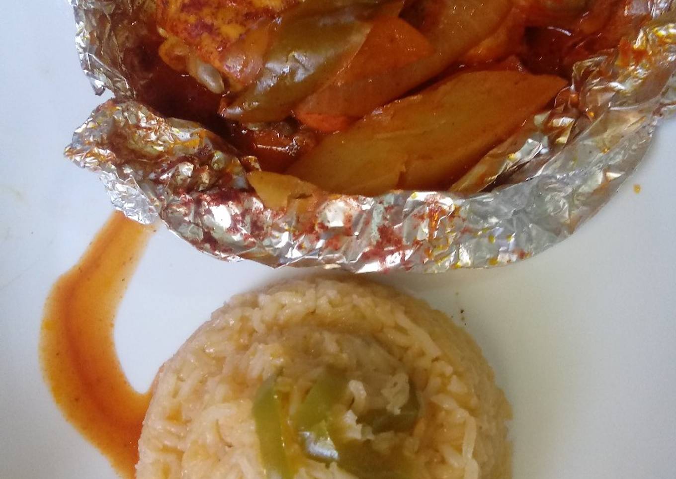 - Cortar aluminio suficientemente grande para colocar el pollo con un poco de todas las verduras y cerrarlo bien