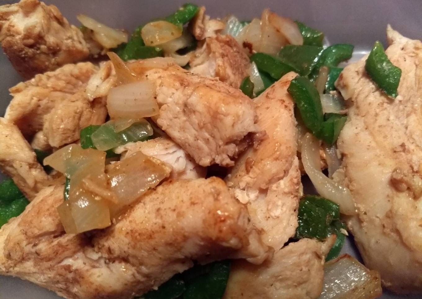 - Agregue al sartén el chile morrón y el pollo