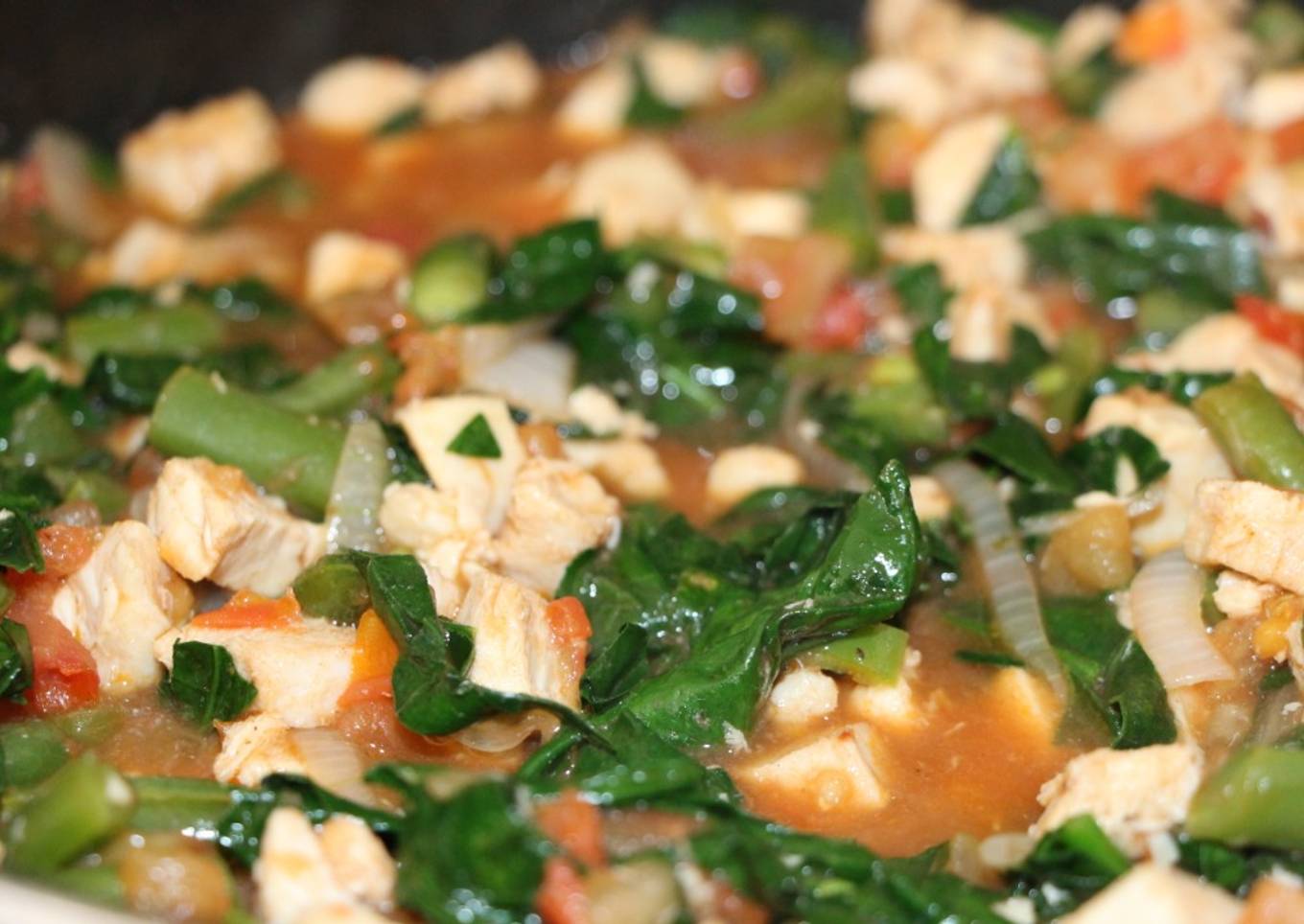 Guisado Mexicano Pollo con ejotes y espinacas