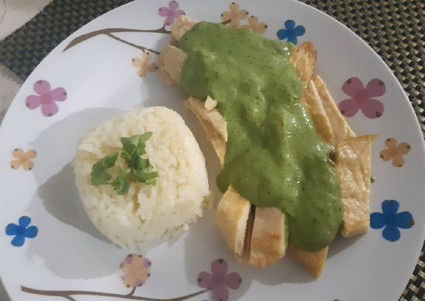 - El pollo hacerlo a la plancha o sartén, salpimentar al gusto, una vez listo cortar en tiras y agregar la crema, se puede acompañar con arroz.