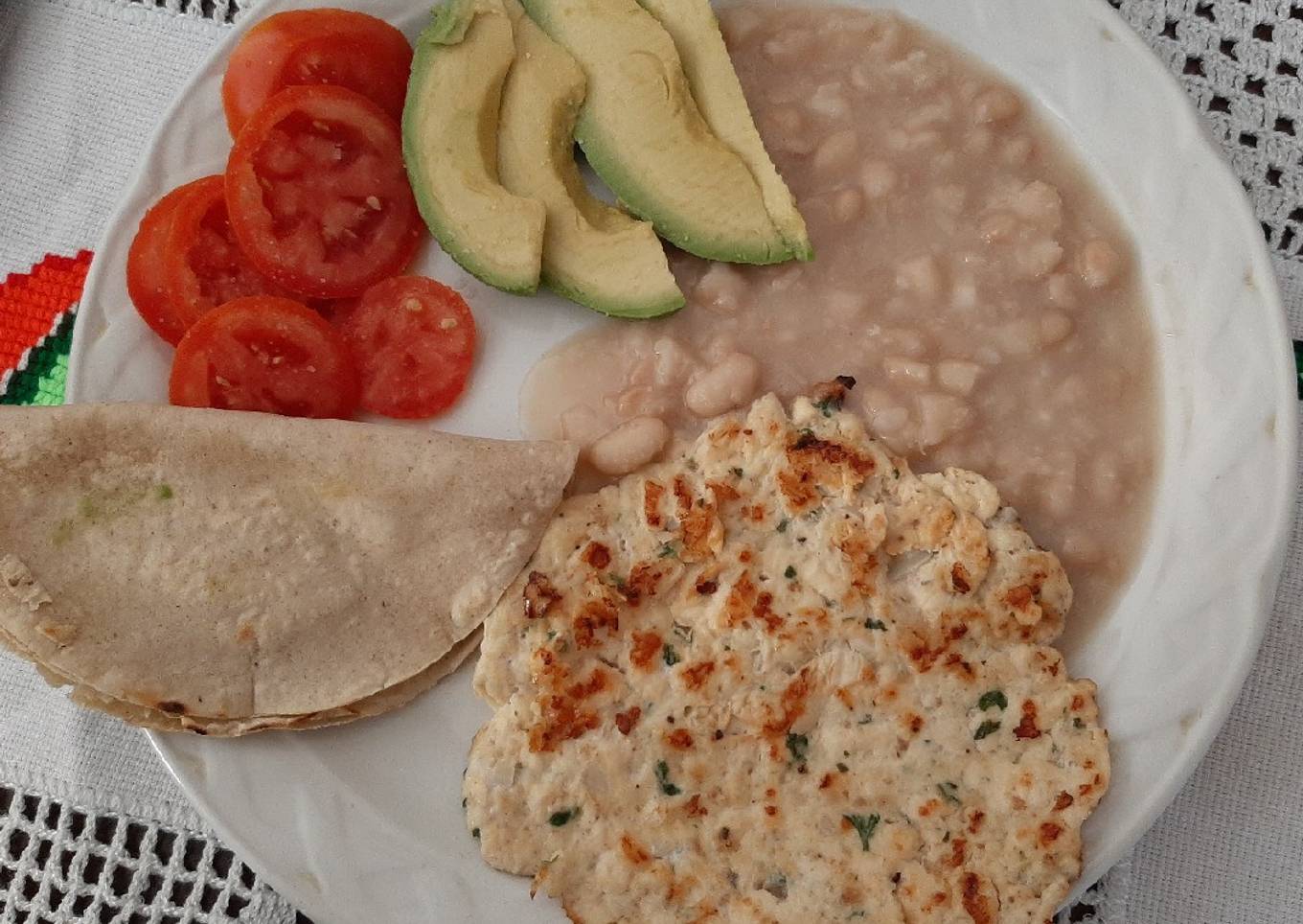 - Coloca el pollo en tu bol. Agrega cebolla, cilantro, sal, pimienta, orégano, pan, leche, revuelve muy bien forma las bolitas. Agrega poquito aceite arriba de las bolitas y aplasta sobre 2 plásticos (bolsa) te puedes ayudar con un vaso y perfeccionar con la mano.