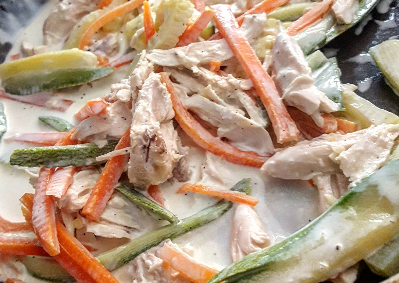 - Agregar el pollo a una cacerola junto con la verdura, dejar que está blandita y después agregar la crema, leche, sal y pimienta.